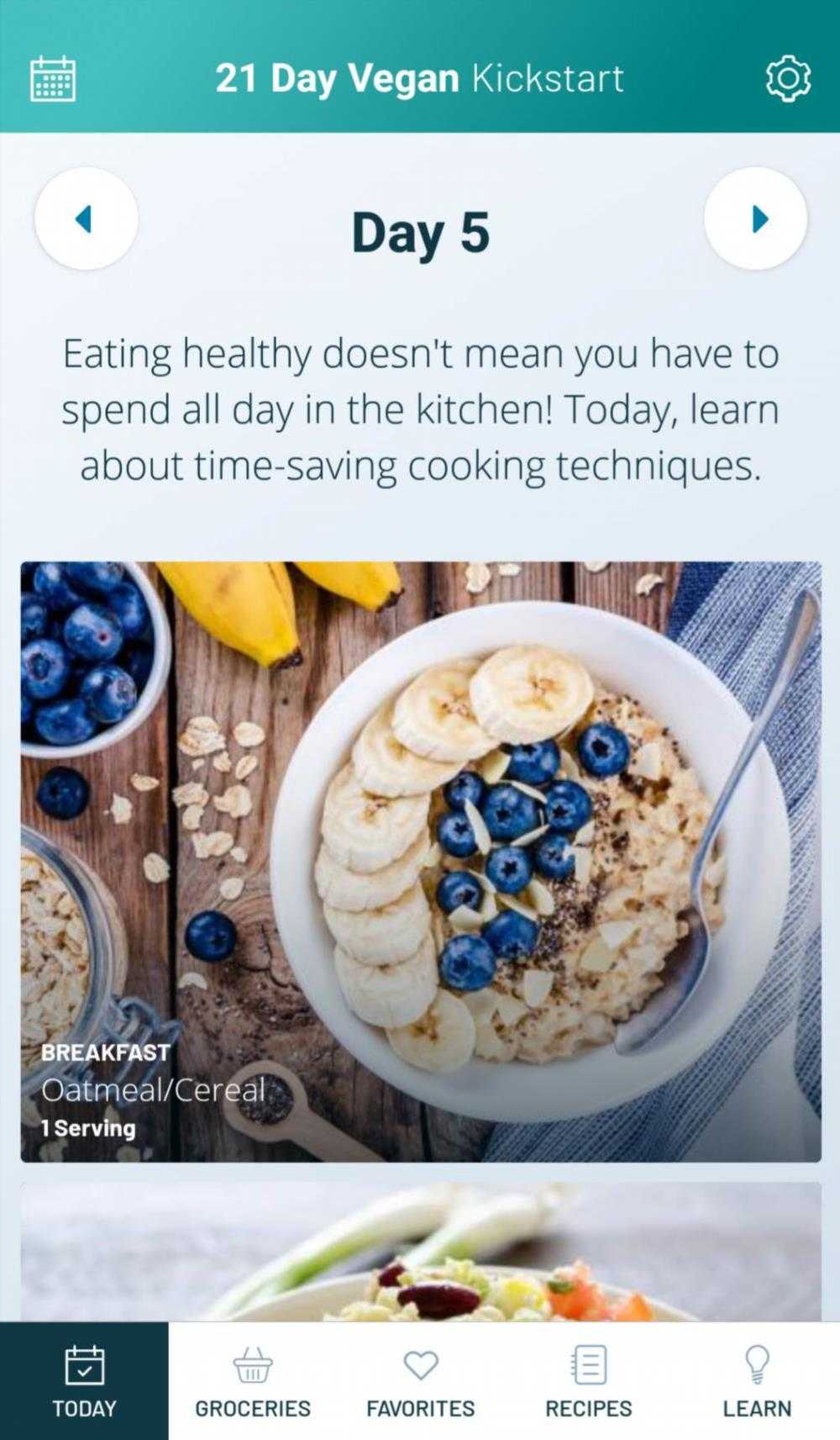 21 Day Vegan Kickstart (Web, Android, iOS): План рецептов для начала веганства