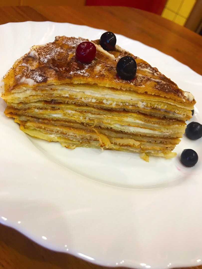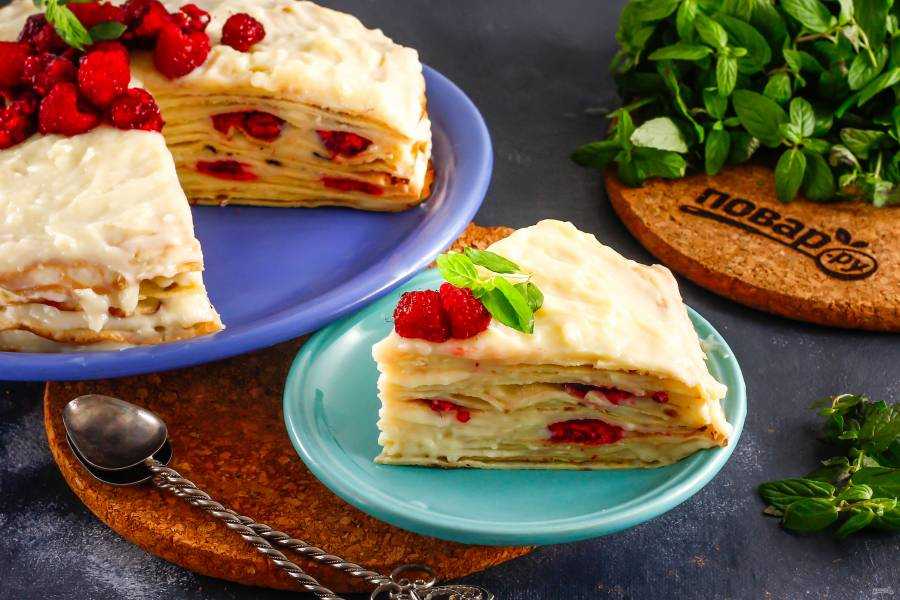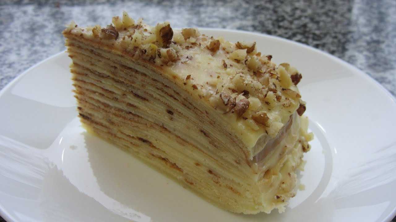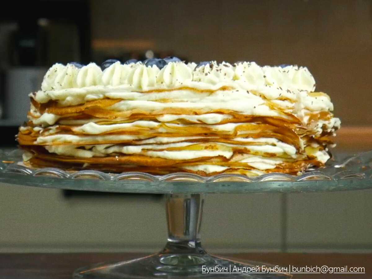 Блинный торт с заварным кремом — отличный вариант для встречи гостей в конце масленичной недели, когда все уже пресытились обычными блинами. По сути своей вы имеете дело с полноценным десертом: нежным, сочным, изысканным. Чтобы торт получился именно таким, будьте очень внимательны в процессе варки крема. Его просто необходимо постоянно помешивать венчиком, иначе он пригорит, что не самым лучшим образом отразится на качестве десерта.