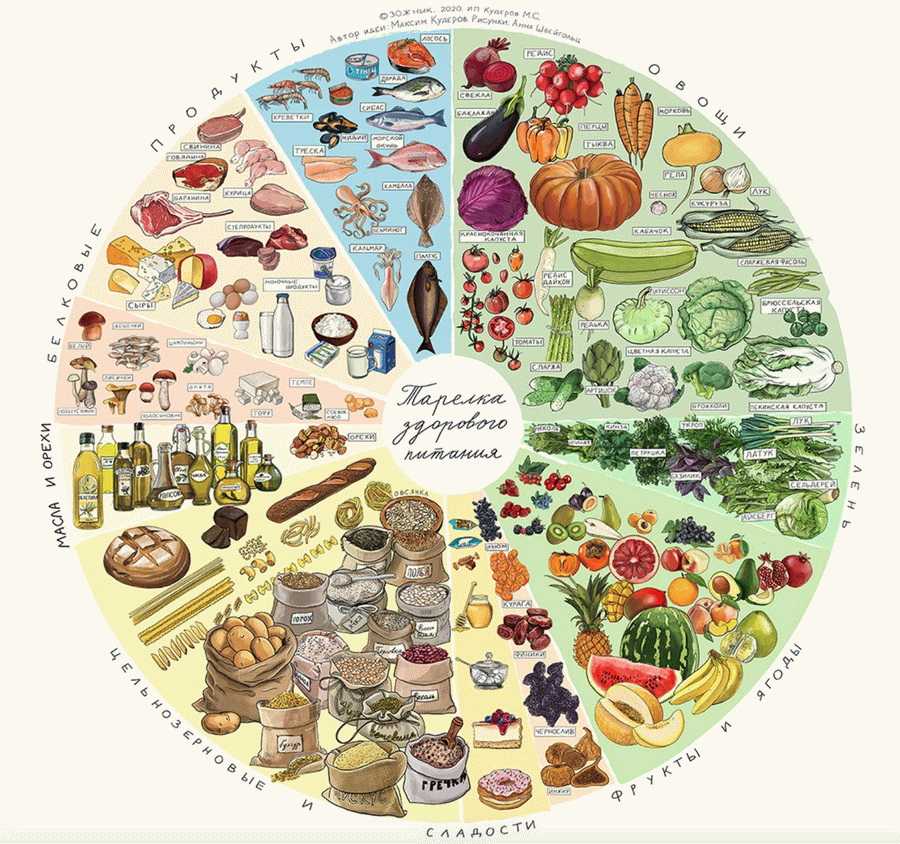 Распределение пищи таким образом позволяет человеку получить максимальное количество основных макрокомпонентов в течение дня. Но давайте подробнее разберем, какую пользу несет в себе каждая из составных частей тарелки.