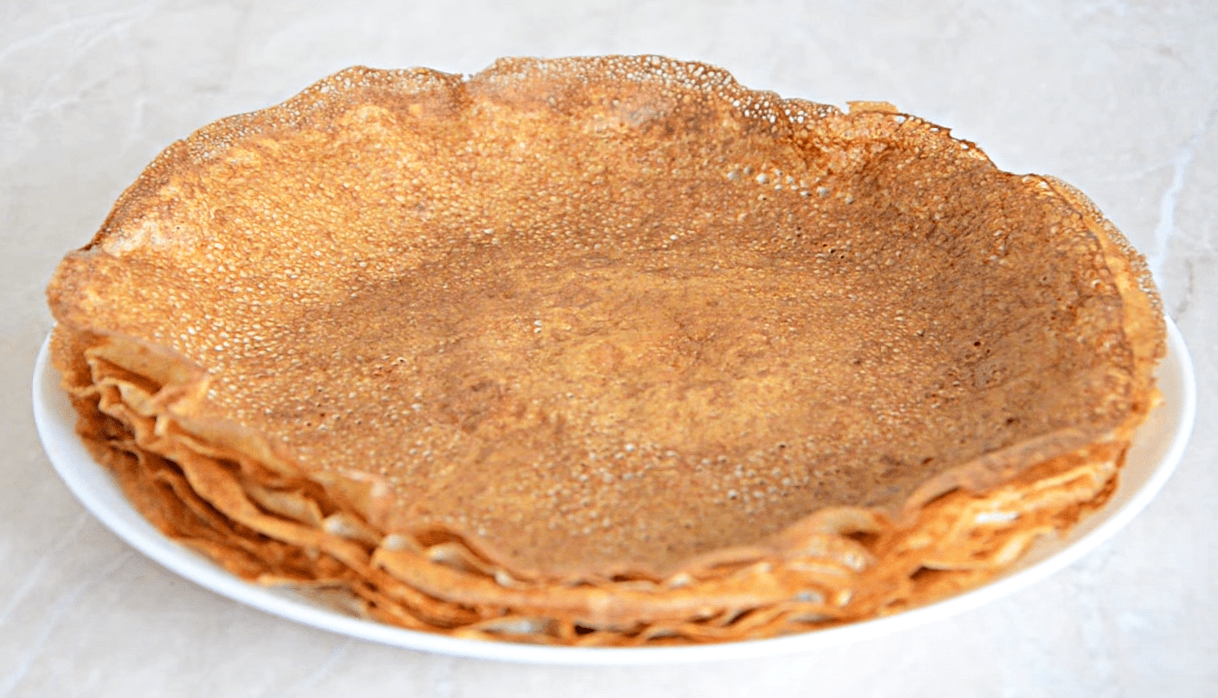 - Печь блины на сковороде как обычно, только не смазывая поверхность маслом.