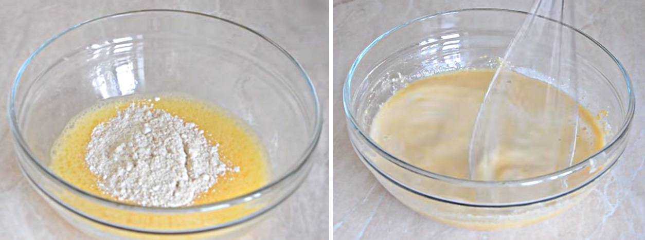 - Белки взбить с солью, добавить масло и остальные жидкости.