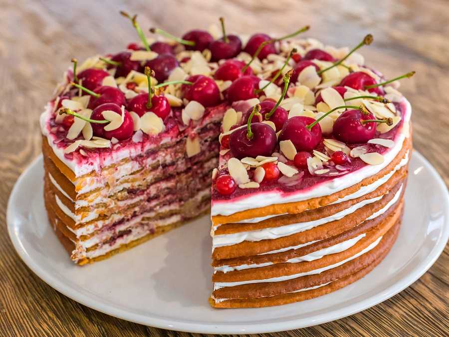 - Повторите процесс нанесения начинки и выкладывания слоев до тех пор, пока не закончатся все компоненты. Убедитесь, что каждый слой торта равномерно распределен и прижат к предыдущему слою.