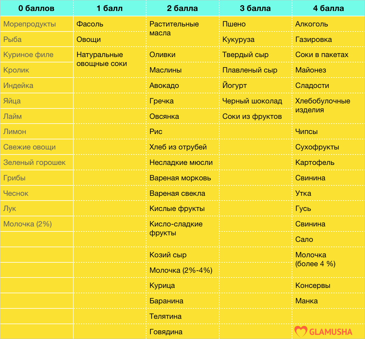 Метаболическая диета: таблица продуктов