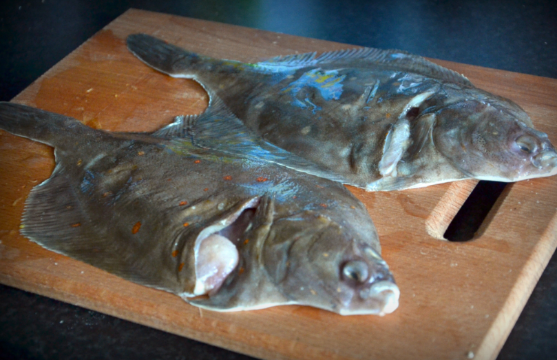 - Камбала — 2 штуки (400-500 грамм)