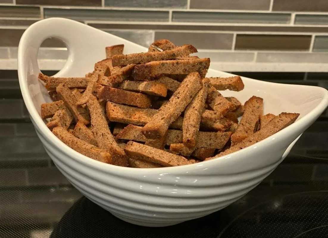 Ну и как ни странно насыщение быстрее наступает от сухарей, чем от хлеба. Хотя кто устоит перед нежной текстурой и приятным ароматом свежего хлеба.