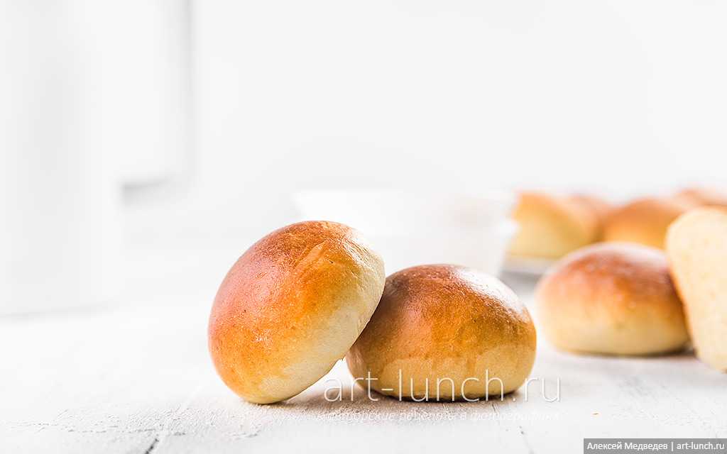 Поднявшееся тесто аккуратно обмять, выпуская углекислый газ, но не нарушая воздушной текстуры. Разделать на кусочки, придать булочкам желаемую форму. Дать им еще немного подойти прямо на противне и поставить в горячую духовку. Рекомендуемая температура для приготовления таких булочек – 200 градусов, но вы свой духовой шкаф наверняка знаете лучше.
