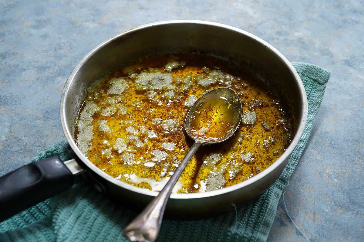Если в процессе приготовления гхи подгорело и получилось темным — это не значит, что оно испорчено. Снимите масло с огня, дайте ему остыть, а после чего попробуйте на вкус. Если оно пригорело лишь слегка, то его все еще можно использовать — оно придаст более выраженный карамельный вкус.