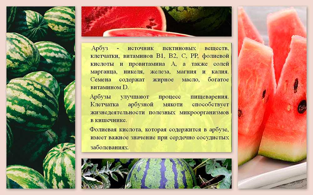В арбузе содержится много полезных веществ. Так, в 100 г мякоти: