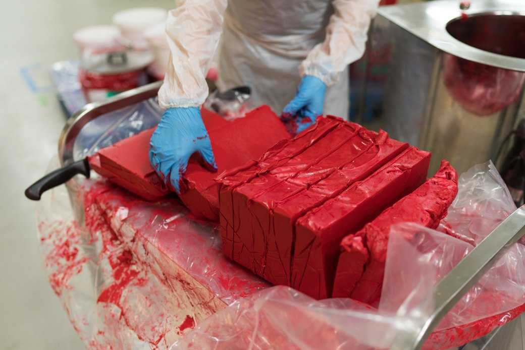 Формовка (разделение общей массы помады на кусочки, придание им необходимой формы)