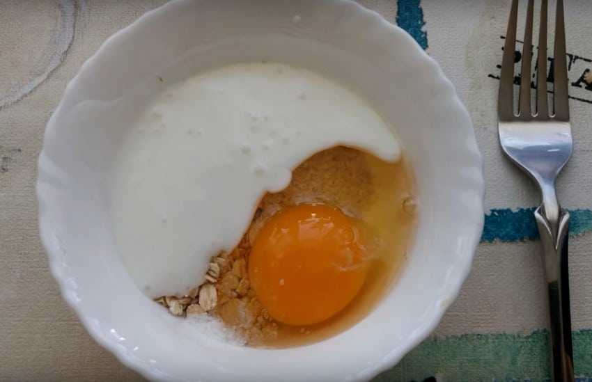 1.Перемалываем овсянку в муку, смешиваем со всеми ингредиентами, чтоб не было комочков. Получаем овсяное тесто. 30 г. перемолотой овсянки – это примерно 2 ст.л. с горкой.