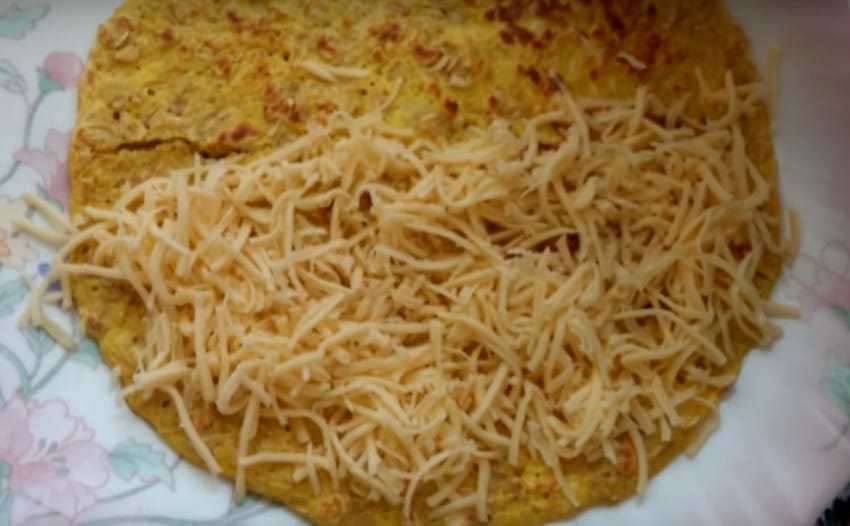 тертым сыром и как только блин начнет схватываться, накрываем сырную часть
