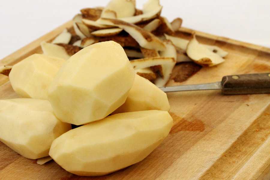 Тщательно чистят картофель, избавляются от испорченных продуктов, вырезают все изъяны. Далее моют картофель и нарезают его тоненькими кружочками.