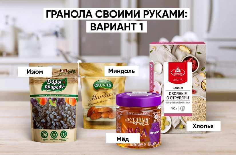 В последнее время в России приобрела популярность гранола– вид американских сухих завтраков и снэков, содержащий овсяные хлопья, орехи и мед, которые запечены до хрустящего состояния. Часто гранола продается в виде батончиков, что делает ее удобным перекусом во время походов и прогулок.