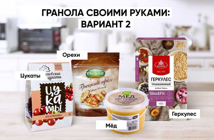 Главный плюс домашнего приготовления гранолы – вы сами можете регулировать количество сладких и несладких ингредиентов, а также орехов в соответствии со своим планом питания. Все ингредиенты для того, чтобы сделать гранолу своими руками, ищите на TEA.ru в разделе «Бакалея».