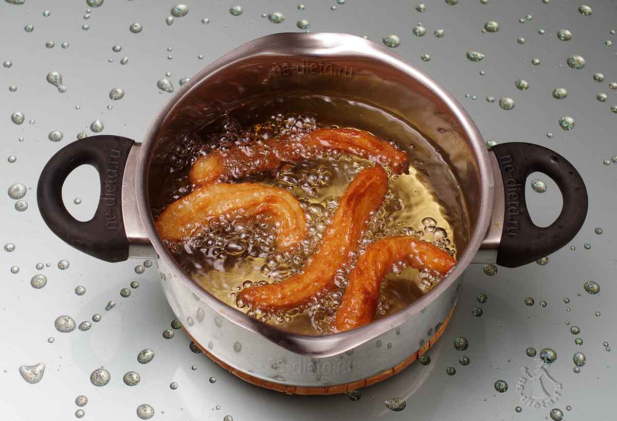 Кстати, несмотря на то, что фритюр требует довольно много растительного масла, большая его часть остается в кастрюле, а поскольку оно почти не загрязняется при жарке чуррос, то в последующем может быть использовано повторно для приготовления других блюд.