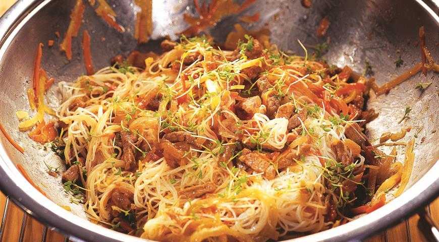 Вермишель можно варить на пару, используя специальный лоток мультиварки или пароварки. В готовую основу можно добавлять кусочки мяса, курицы, рыбы, овощи или морепродукты в сочетании с приправами и соусами.