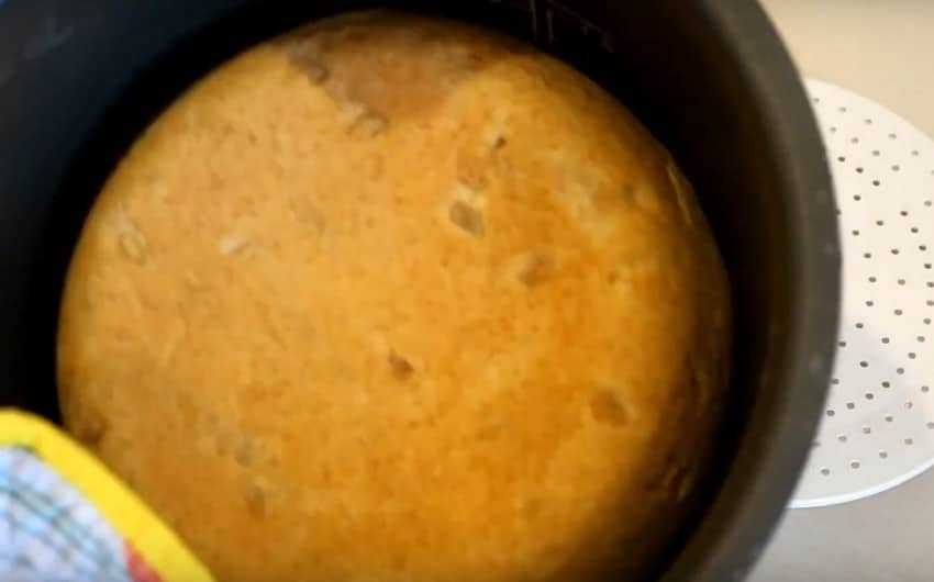 - За 10 минут до готовности достаем хлеб, переворачиваем на другую сторону.