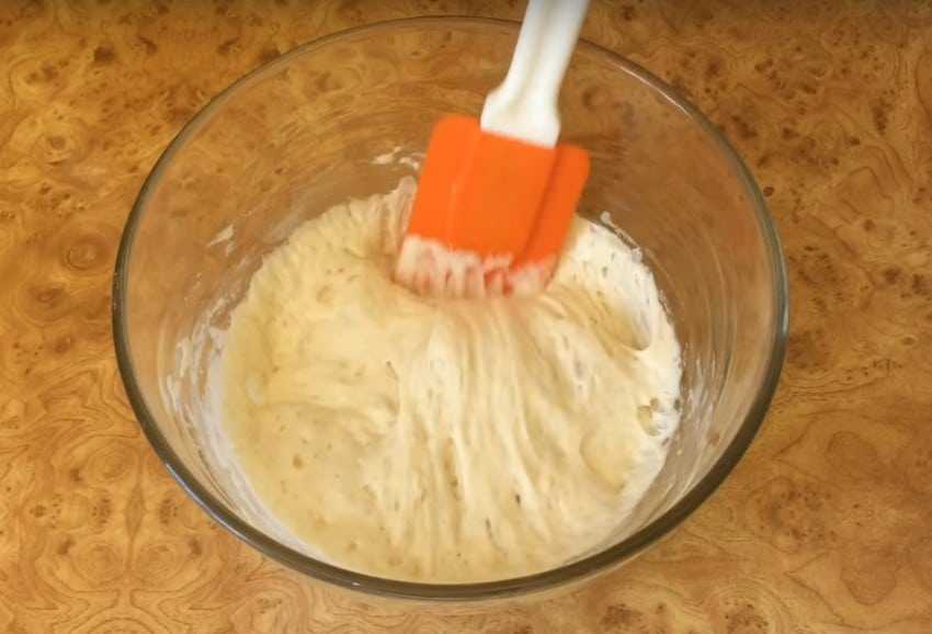 - Перемешиваем тесто до получения консистенции, напоминающей сметану.