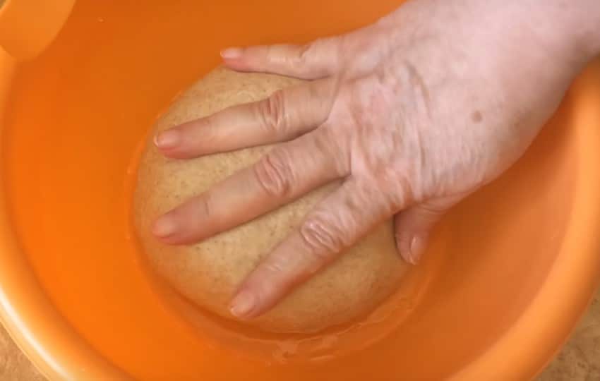 4. Сформируйте тесто в шар, выложите его в миску, смазанную растительным маслом, накройте влажным полотенцем и оставьте его на расстойку часа на 3 – 4.