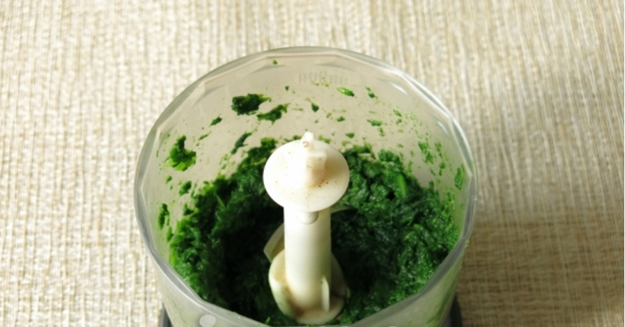 Отваренный шпинат с лимонным соком измельчить в блендере.