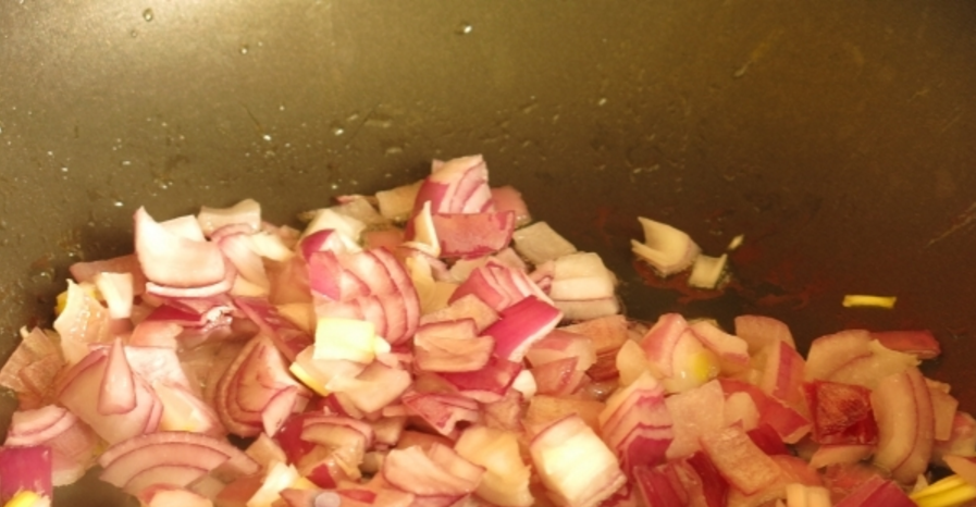Лук почистить, порезать кубиком и обжарить на сковороде.