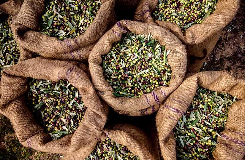 Зеленые плоды вручную собираются с деревьев и помещаются в специальные корзины. Чтобы собрать спелые плоды, под каждое дерево помещают мелкие сетки. В них осыпаются ягоды, потом разделяют по размеру. Этот этап называется калибровкой. После этого для удаления специфического горького привкуса, оливки отмачивают в объемных чанах в растворе, в основу которого входит каустическая сода.