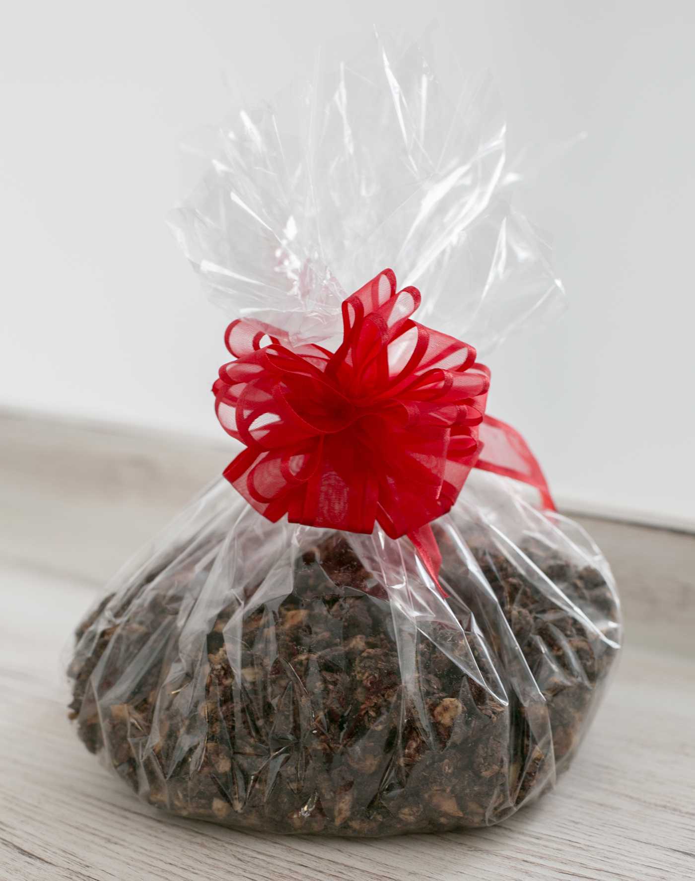Когда гранола приготовилась, я очень расстроилась — ведь она сильно блестела от масла и расплавленного шоколада. Я дала ей остыть в противне около полу часа. Потом переложила в стеклянную миску, слегка прикрыла крышкой и оставила на сутки отстояться. В конечном счете результат очень порадовал. Гранола стала матовая, сухая и хрустящая с умопомрачительным ароматом, поглощающий все и всех вокруг себя. Рецепт действительно замечательный, всем советую попробовать. Впервые я приготовила шоколадную гранолу как часть подарка любимому мужу, что бы сделать его завтраки более разнообразными.