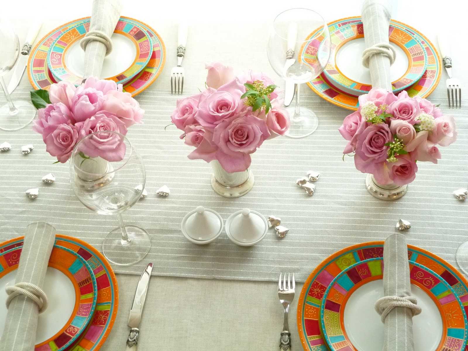 Лучшего декора для стола чем живые цветы еще никто не придумал. Чаще всего у меня дома стоит букет живых цветов, который просто перемещается в центра стола, но если нет, то я ставлю свечи и что под руку попадется симпатичного (например, зимой могу украсить стол шишками, которые притаскивают домой дети). И вовсе не обязательно выставлять на стол свой лучший фарфор, мне нравится мешать и текстиль посуду разных стилей — это добавляет уюта и неформальности.
