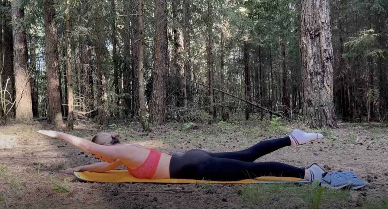 Далее выполняется усложнённый блок упражнений в положении лёжа на животе: