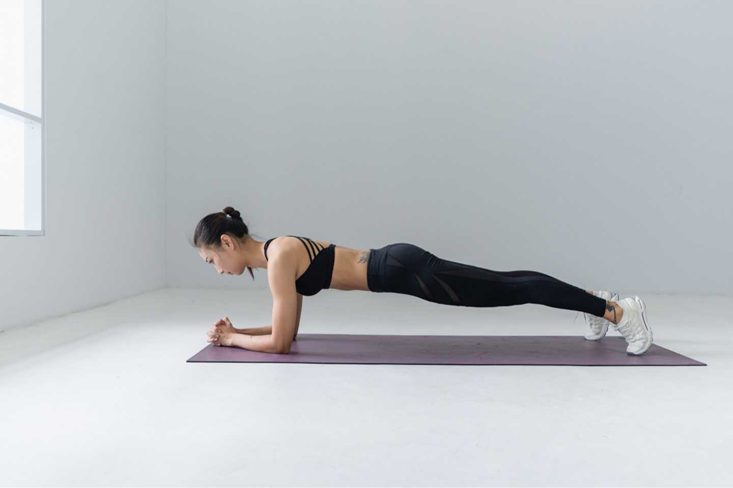 Это упражнение для развития статический выносливости отлично подтягивает мышцы живота: примите правильное положение и держите его в течение минимум 30 секунд, постепенно увеличивая до своего максимума. Чем дольше сможете продержаться, тем выше ваша выносливость!