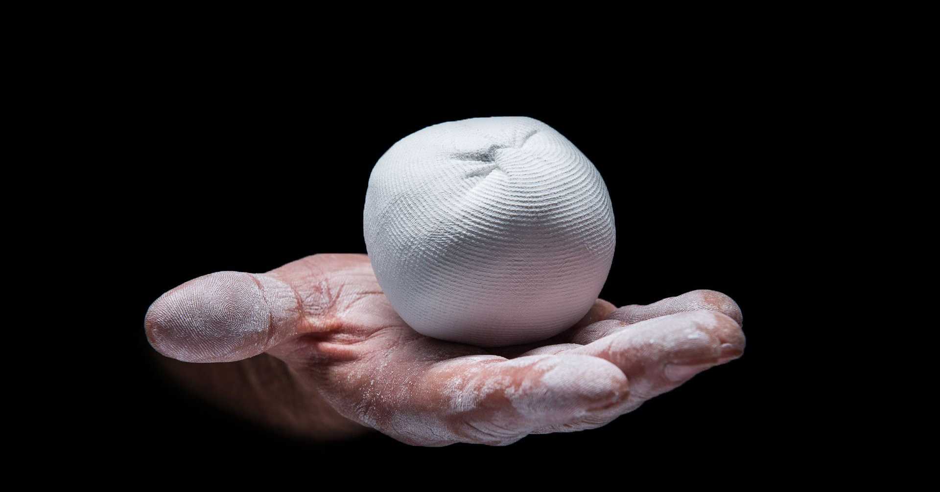 — небольшие мешочки из пористого сетчатого материала. Их наполняют порошковой магнезией, а затем зашивают. Как правило, производители кладут в мешочек такое количество магнезии, чтобы шарик было удобно держать в руке — от 25 до 60 грамм. Производят также шарики со шнурком-затяжкой