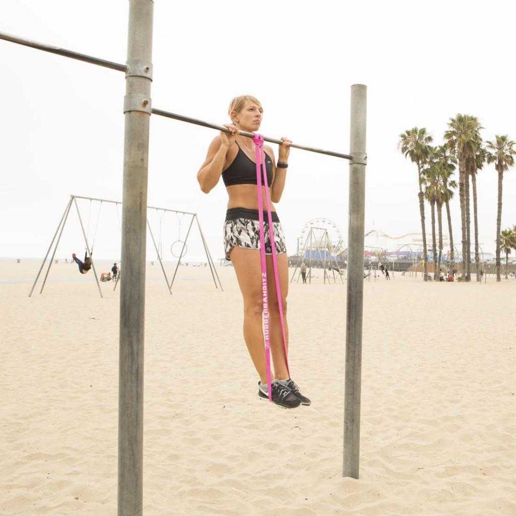 Самое распространенное упражнение на бицепс — подтягивания. Однако для девушки такое упражнение будет сложным, поэтому можно воспользоваться тренировочной резиной, которая облегчит выполнение упражнения.