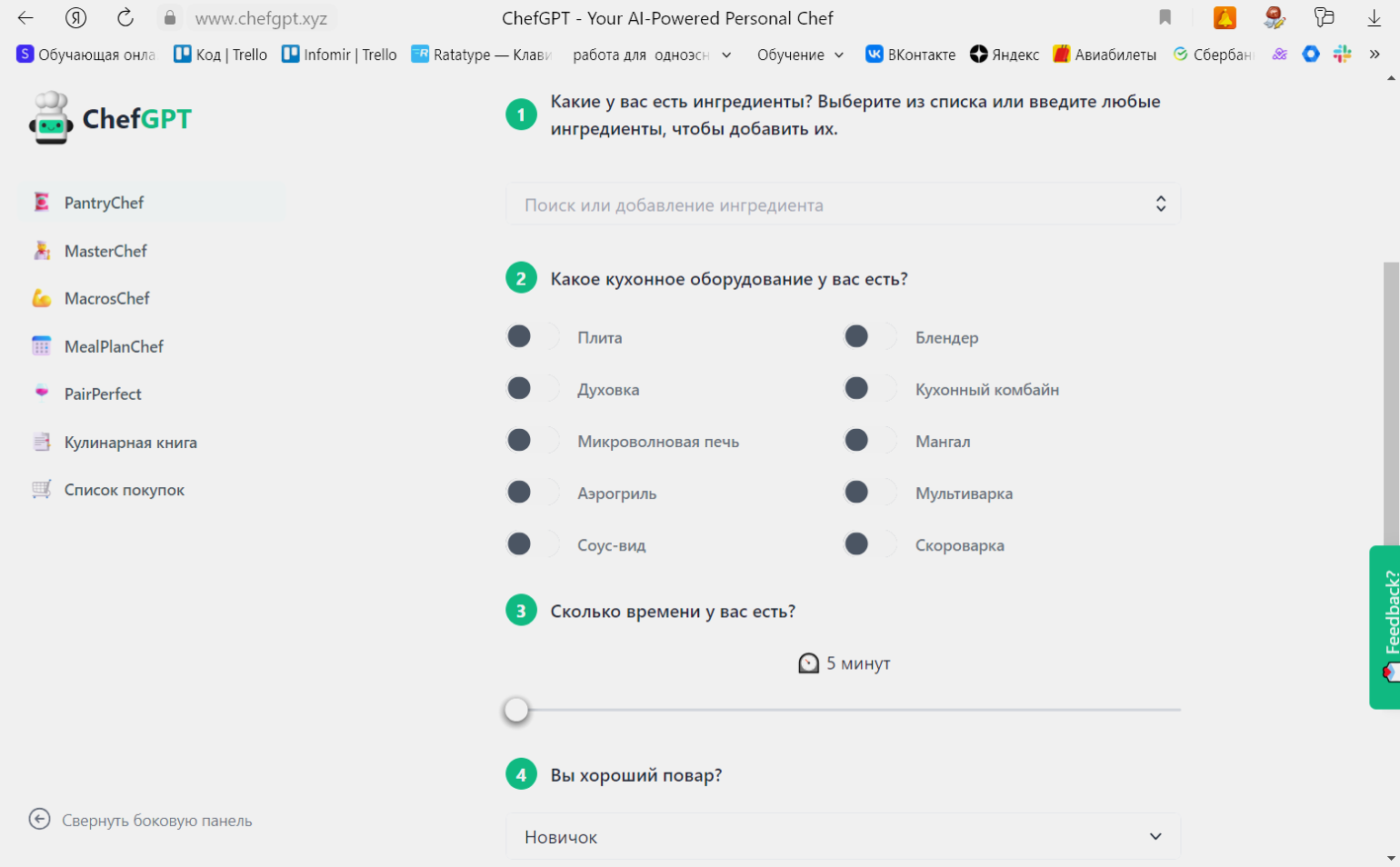 Пробная версия: бесплатно можно создавать до пяти рецептов в месяц.
