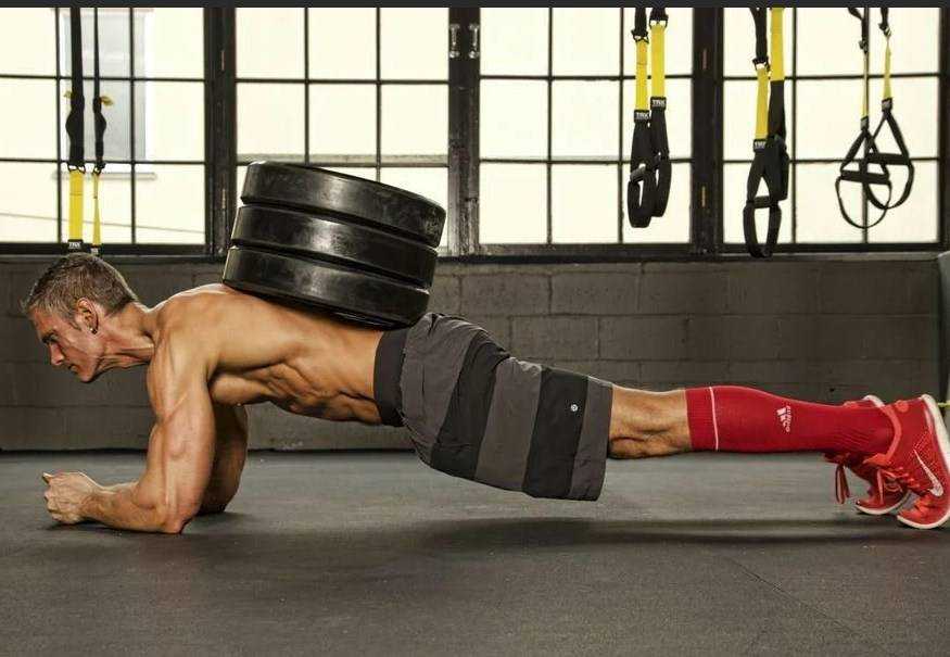 планка для мужчин изначально может выполняться с утяжелением — попросите кого-то положить на спину диск для штанги;