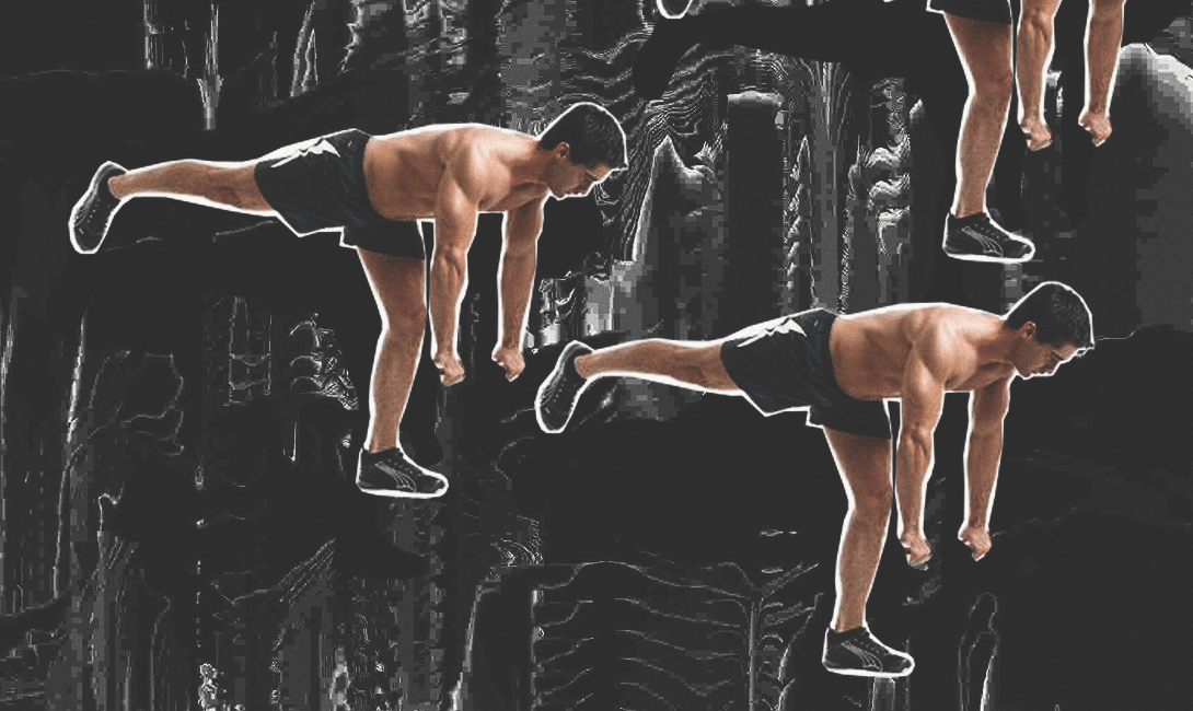 Встань прямо. Одну руку прижми к телу — она не должна двигаться. Твоя задача — достать другой рукой до пола, одновременно отрывая ногу от земли. Движения должны быть ровными, спина — прямой, руки и ноги — прямыми. В момент, когда твоя рука коснется пола, твое туловище и поднятая нога должны формировать ровную линию. Сделай по десять наклонов на каждую сторону. Трех повторений будет достаточно.