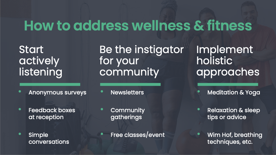 That’s no problem, that’s what communities are for! Reach out to local wellness experts in the area to provide a more experienced service to your members. That way, you’re providing a more complete holistic experience to your members while also making more established connections with your local community.