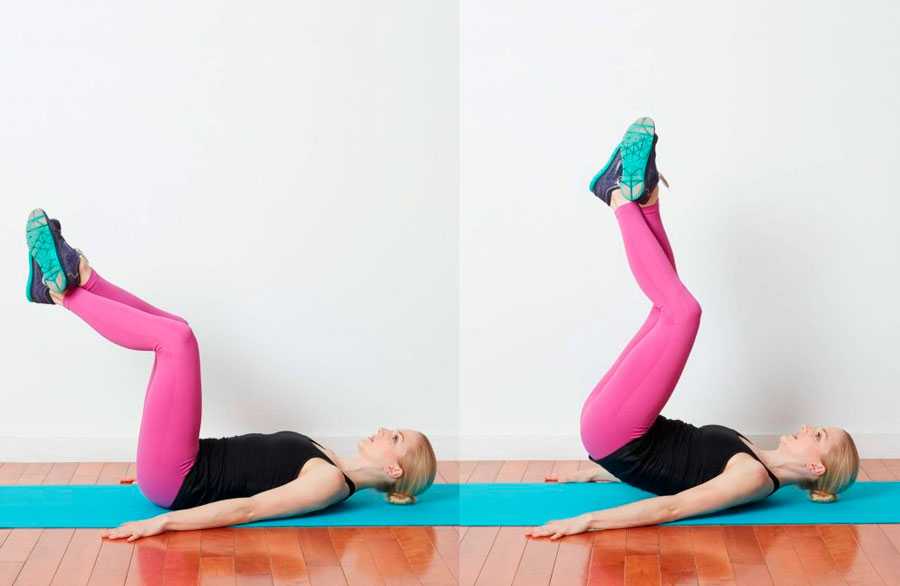 Скручивания с поднятыми ногами боремся с подкожным жиром эффективно.