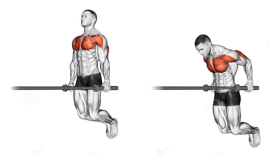 Упражнения на брусьях отлично развивают грудные мышцы. С их помощью можно скорректировать объем и форму. Упражнения на грудь на брусьях могут быть следующими: