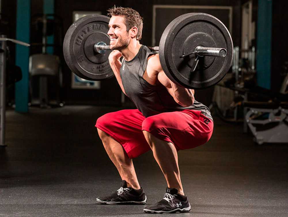 - Приседание со штангой — 2 подхода × 10-12 повторений.