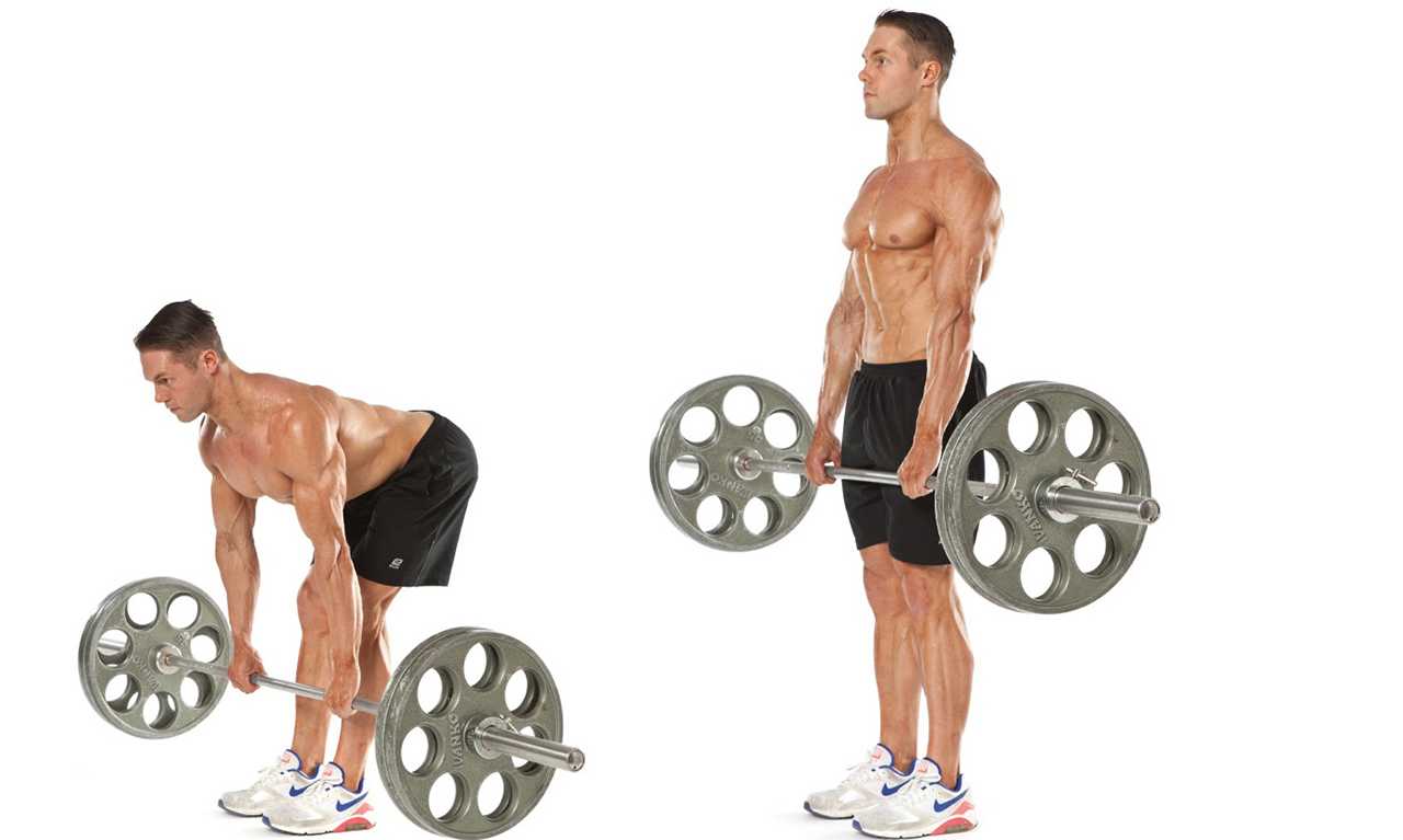 Значительная часть нагрузки при данном варианте выполнения приходится на спину. А мышцы ног работают лишь в начале – при отрыве снаряда от пола.