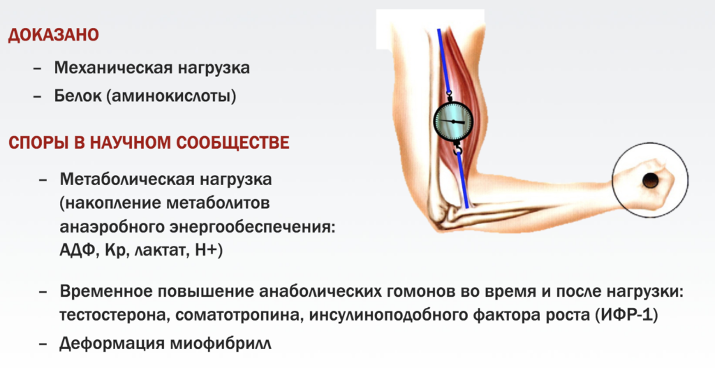 Вообще же доказанные причины гипертрофии в научном сообществе — одна из самых спорных тем. Вот к примеру позиция FPA (Ассоциации профессионалов фитнеса) о доказанных и спорных причинах гипертрофии: