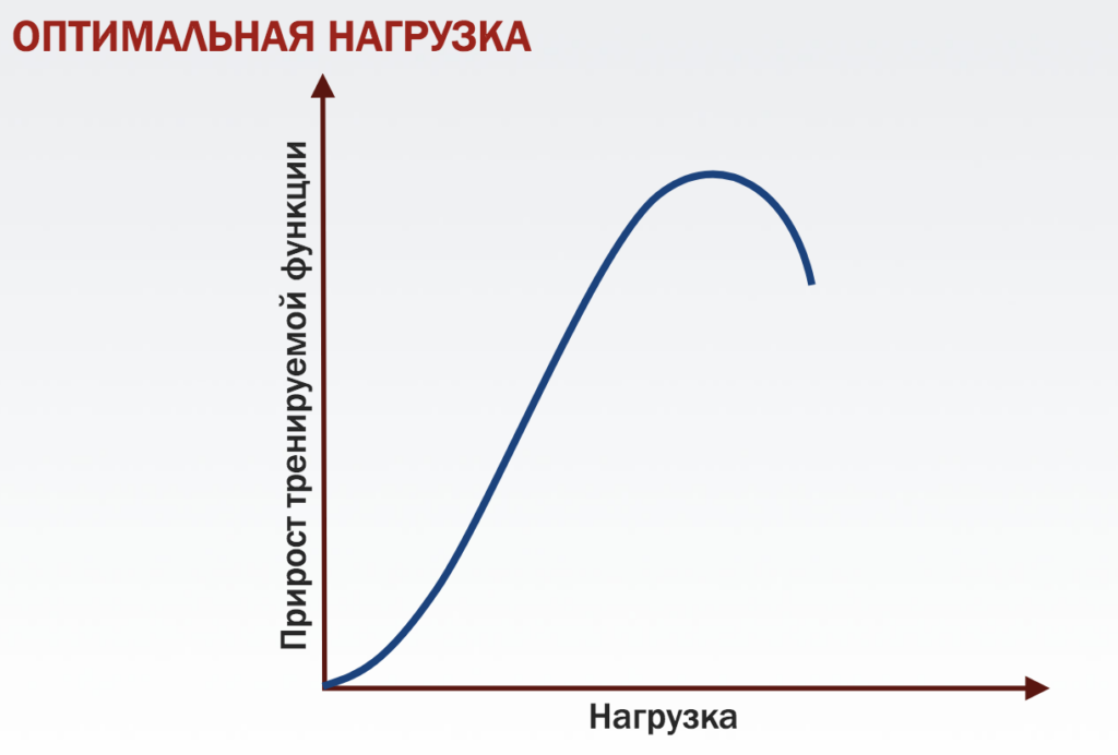 То есть в соответствии с этим принципом до определенной нагрузки скорость прироста того же объема мышц будет расти, но не бесконечно. В какой-то момент нагрузка станет такой высокой, что рост сначала остановится, а дальнейший прирост нагрузки будет только ухудшать показатели (по ряду причин, основная из которых — недовосстановление).