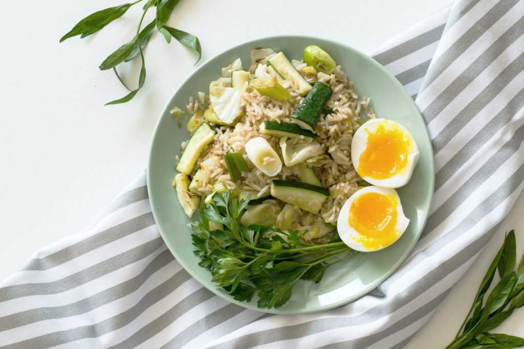 - Вареный рис (200 г), сливочное масло (10 г), яблоко / банан, кофе без добавок.