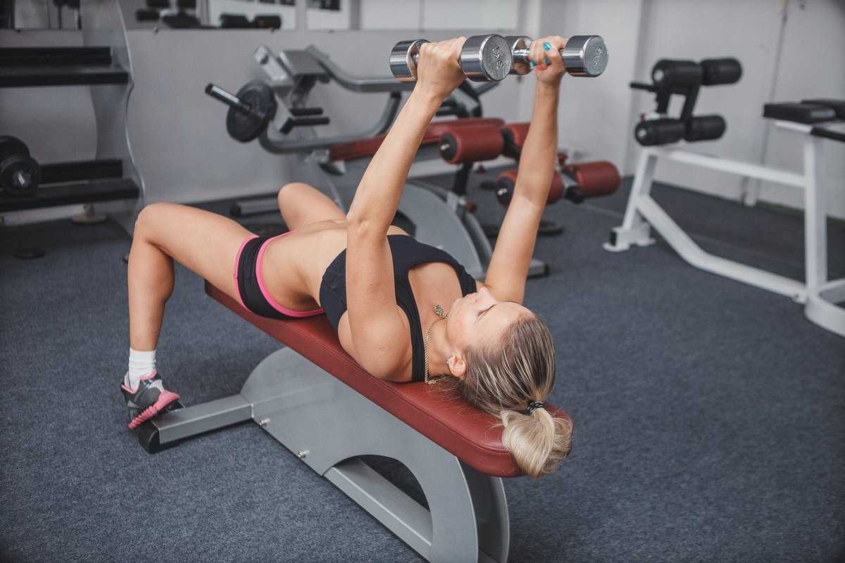 Тяжелое, но эффективное упражнение для грудных мышц для женщин в спортзале, которое может выполняться на скамье: