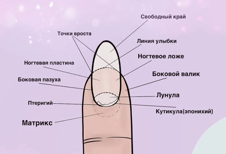 Тонкая пленочка, постоянно появляющаяся на ногте из-под проксимального валика, называется эпонихий. В среде мастеров ногтевого сервиса – птеригий.