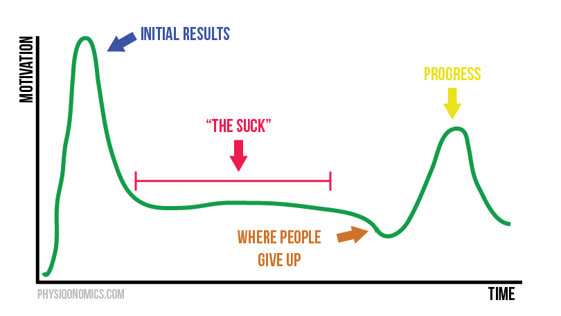 Когда вы начинаете диету и видите первые изменения в лучшую сторону, начинается головокружение от успехов. Вы думаете, что и дальше будет так же просто, мотивации выше крыши. Но это заблуждение: вскоре переходите в следующую фазу, которую я называю «Отстой» — делаете все правильно, но никаких изменений больше нет.