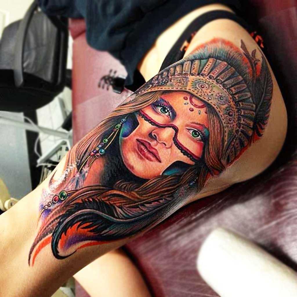 Татуировка всего бедра