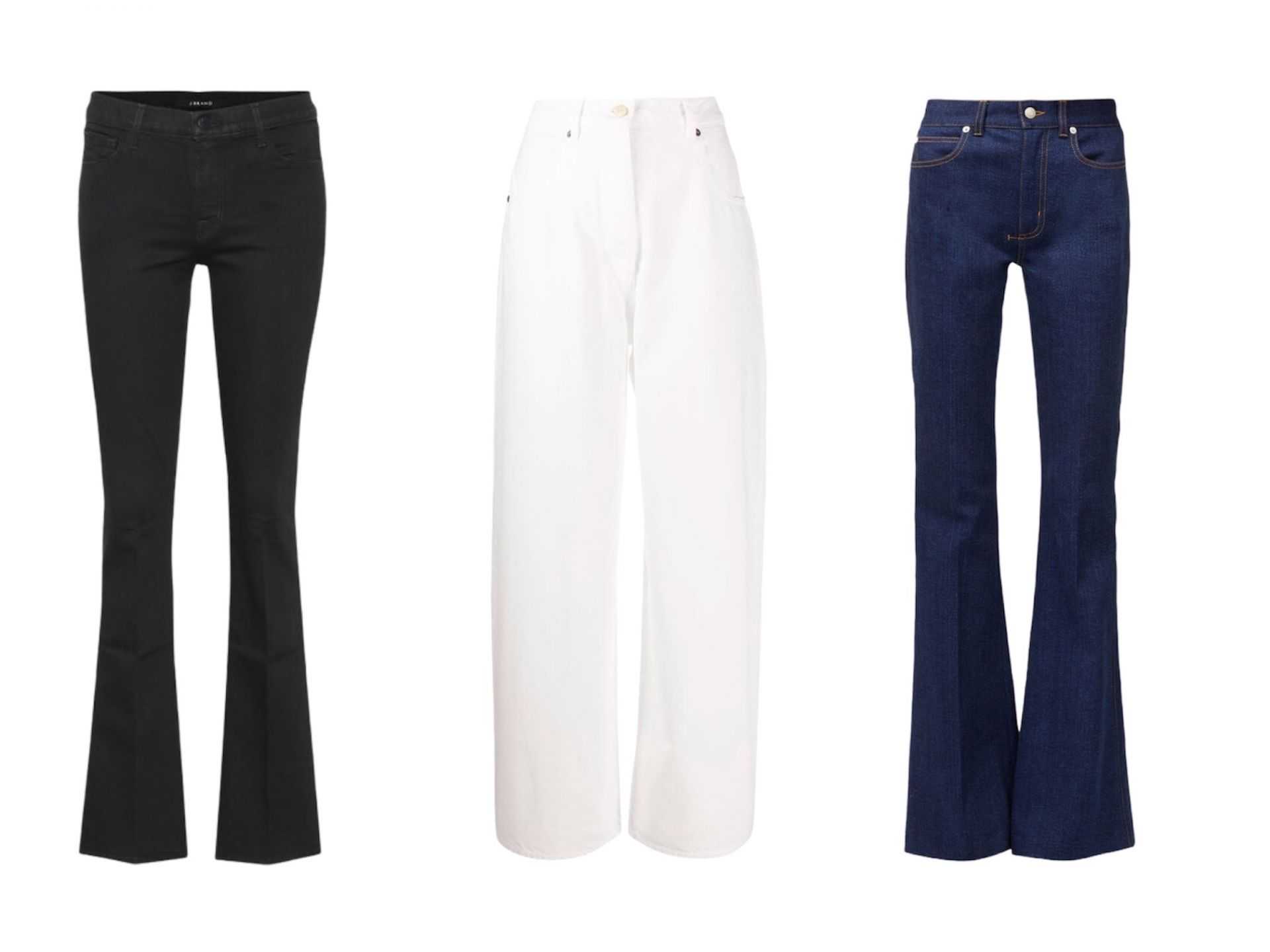 Расширяющаяся книзу модель джинсов сделает фигуру более пропорциональной.