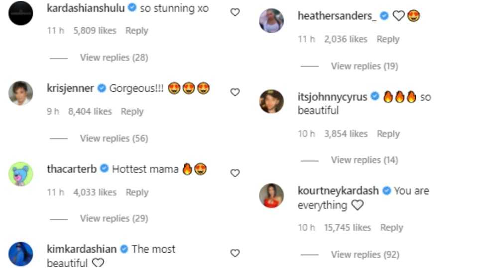 Kylie’s post garnered more than 10 million likes and several thousand comments within an hour of being posted on social media. Her mother, Kris Jenner, sisters Kim Kardashian and Kourtney Kardashian also dropped their reactions. «Gorgeous,» Kris wrote. «The most beautiful,» and «You are everything,» Kim and Kourtney commented.