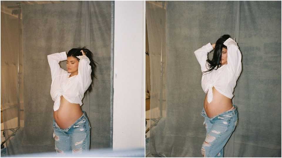 Kylie Jenner took to Instagram to share stunning pictures of herself flaunting her baby bump for a new photoshoot. She wore a chic white shirt featuring a front knot with distressed denim.